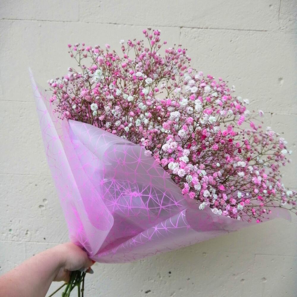 Лента – 1 шт.Упаковка – 1 шт.гипсофила радужная розовая – 9 шт.