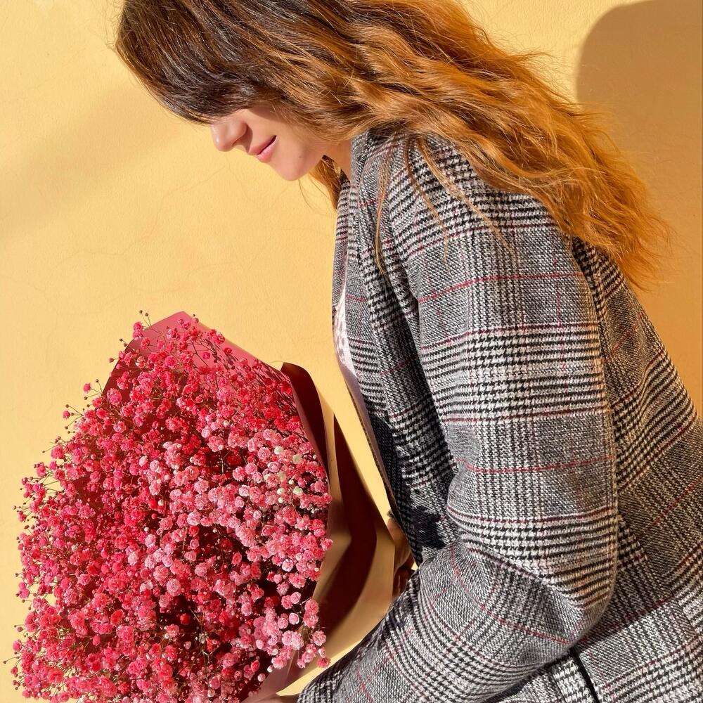 Гипсофила – 5 шт.Лента атласная – 1 шт.бумага матовая – 1 шт.