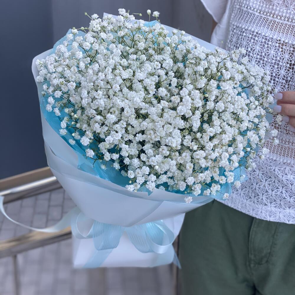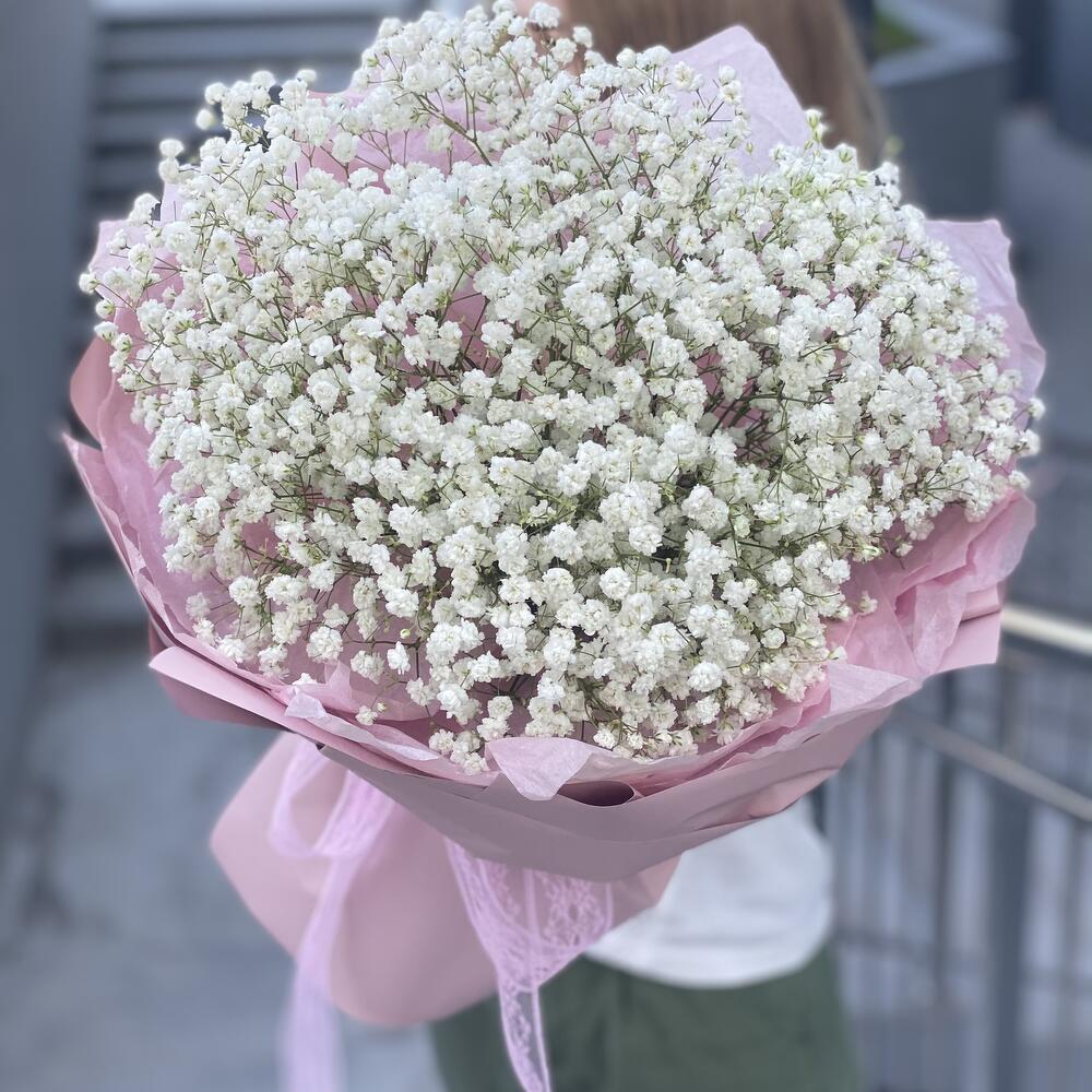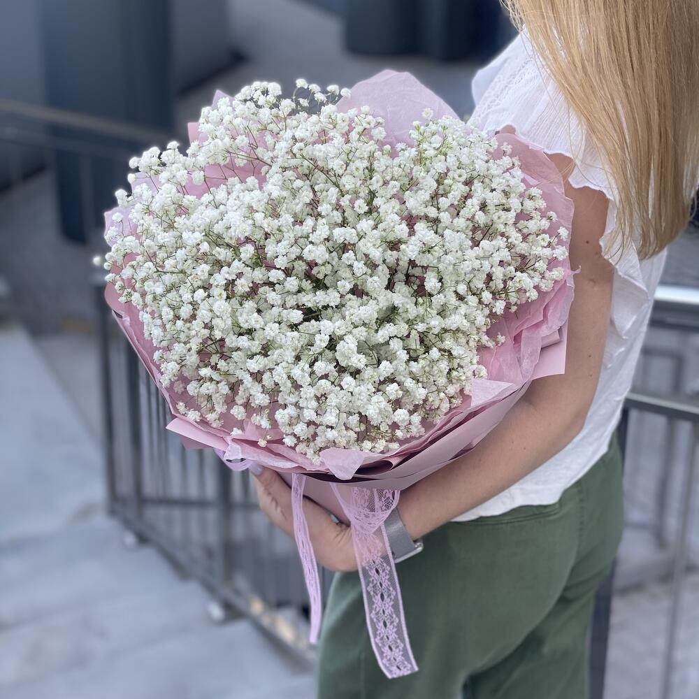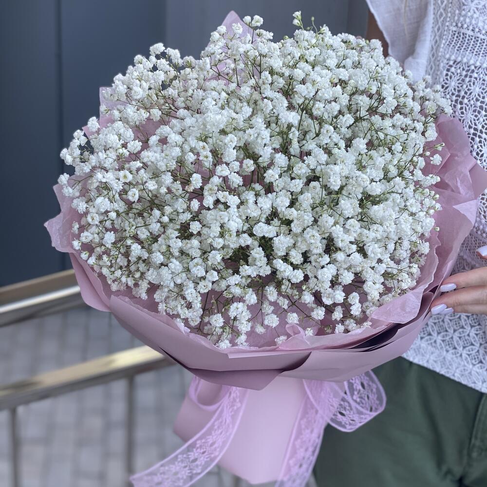 Моно букет из белой гипсофилы в стильном оформлении!