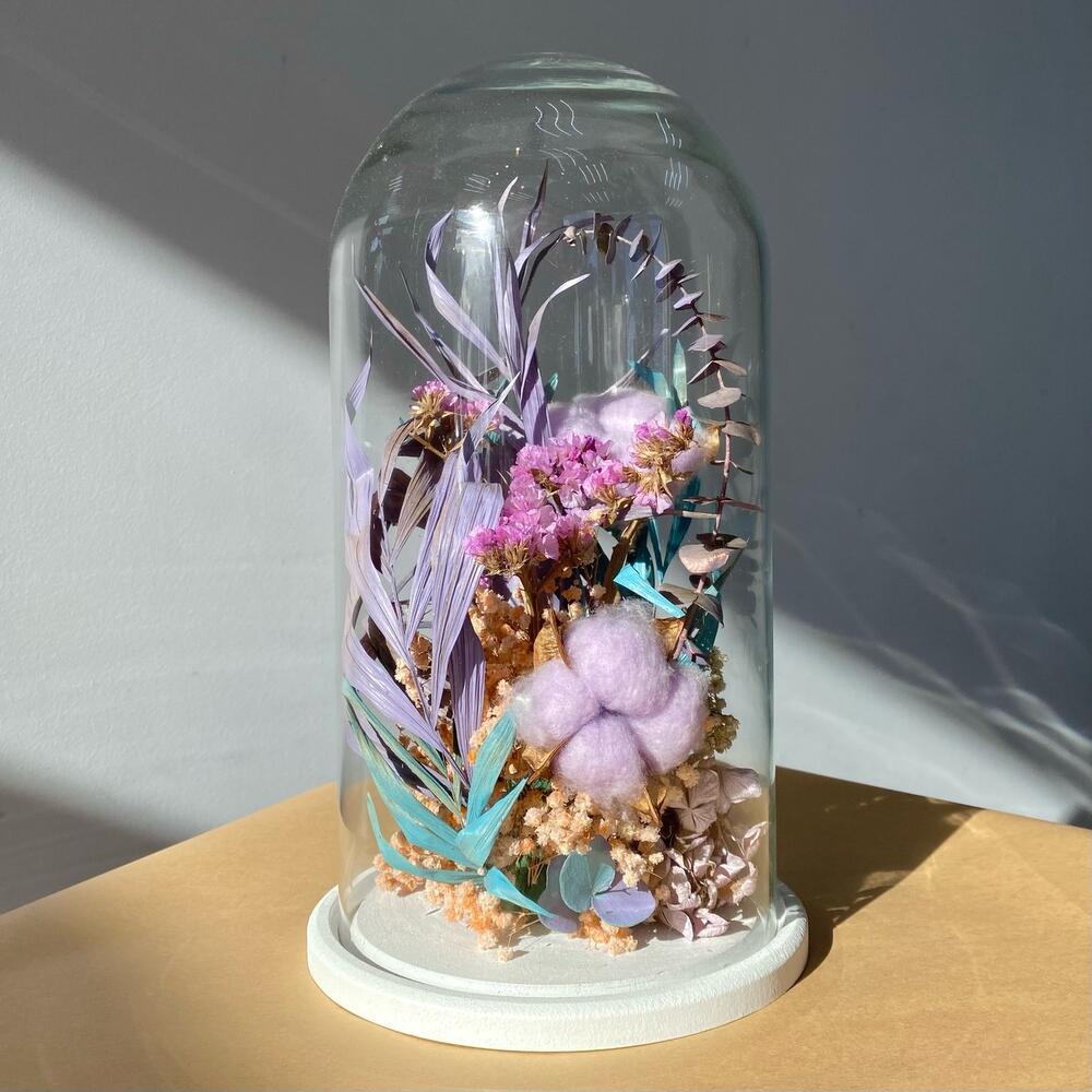 «Лавандовое созвездие» Букет из розы, гвоздики, статица и хлопка