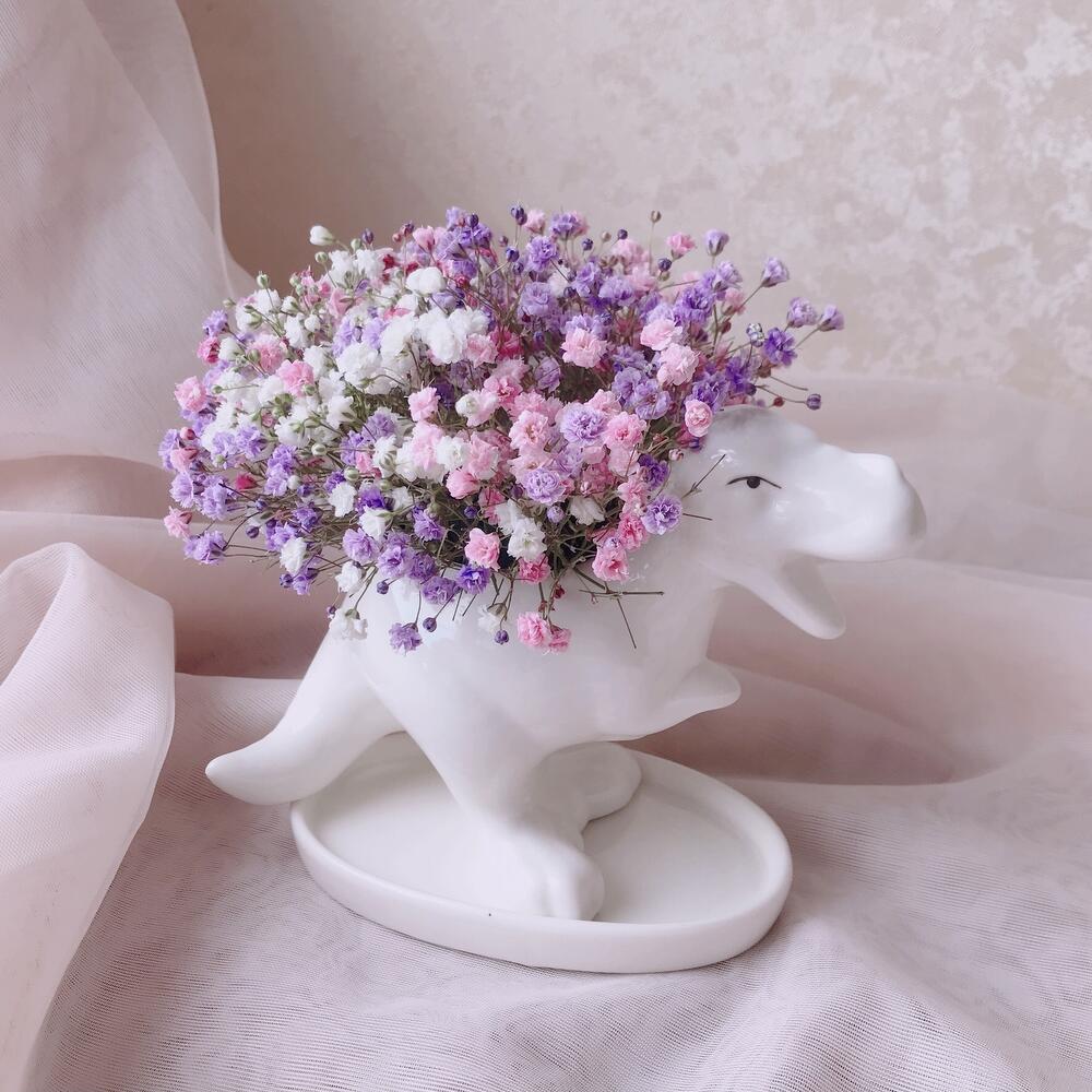 Очаровательная композиция из изысканных свежих цветов.Наполнена множеством соцветий радужной гипсофилы. Собрана в милом кашпо в виде динозавра «Тирекс»Композиция из гипсофилы – необычный подарок, который удивит своей невероятной стойкостью, при правильном и простом уходе. ❤ Ставить композицию в прохладном месте, избегая отопительных приборов и прямых солнечных лучей. ❤ Подливать немного воды в серединку. Гипсофила не вянет, а становится сухоцветом, сохраняя свой вид. Поэтому композиция продолжит радовать ещё очень долго! Почему выбирают нас? – Работаем на качество. – Бережно упакуем в транспортировочную пленку, чтобы защитить во время доставки от любых погодных условий. – Приложим инструкцию, как правильно ухаживать за цветамиСохраняйте товар в подборках, чтобы не потерять