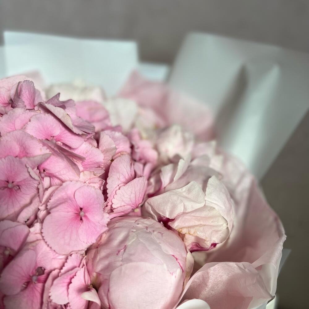 Букет с гортензией и пионами