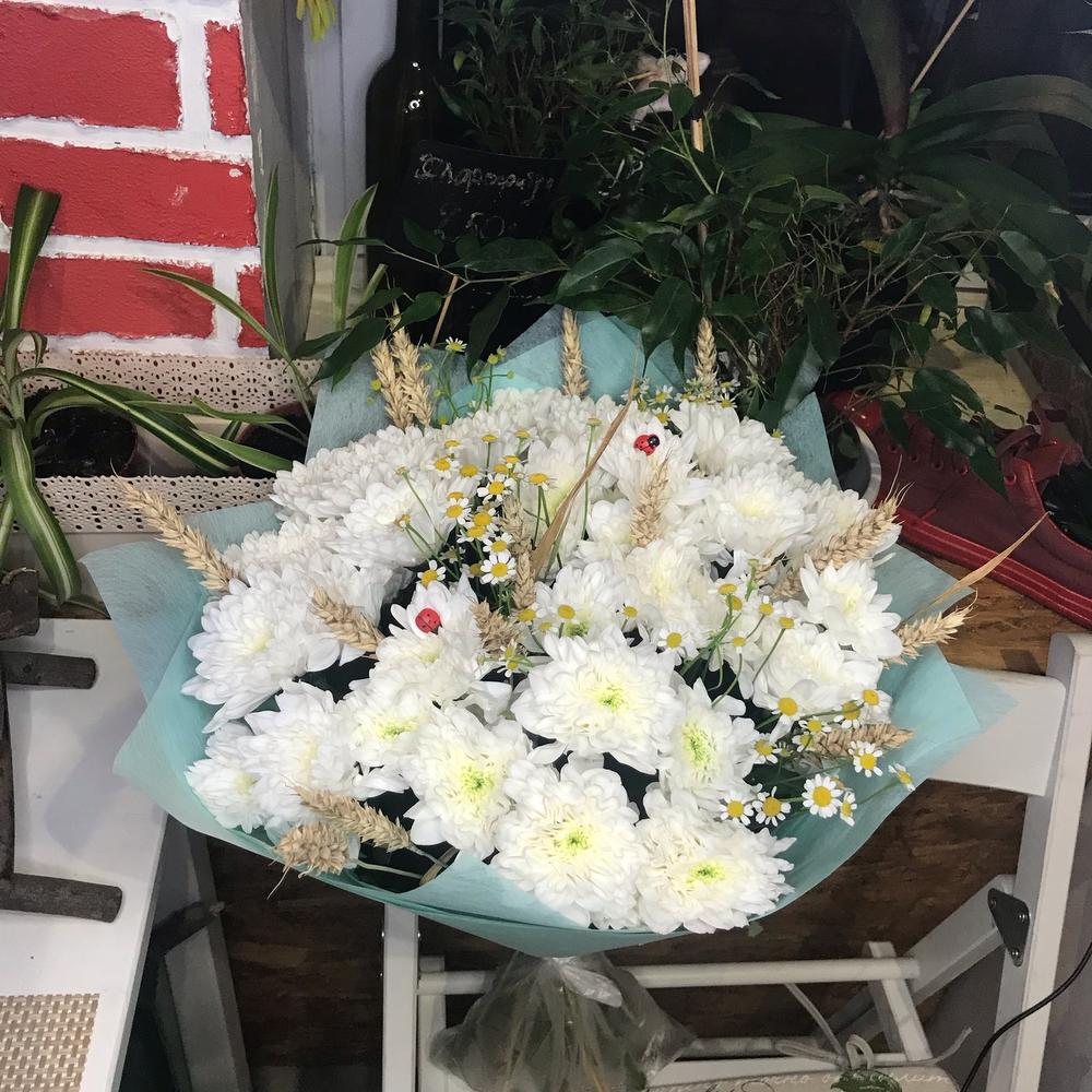 Хризантема кустовая – 7 шт.Упаковка – 1 шт.Матрикария – 4 шт.Колосья – 15 шт.Божья коровка – 2 шт.