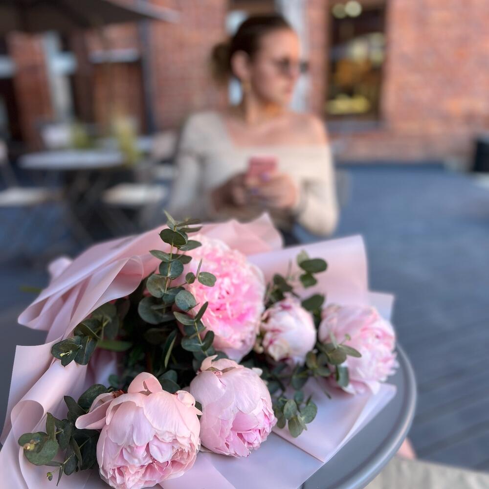 Букет «Текила-Любовь» (пионы с эвкалиптом)