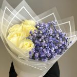 Букет из фиолетовых гипсофил и белых роз