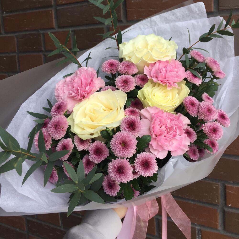 Категории: Гвоздики, Кустовые розы, Розы, Хризантемы
