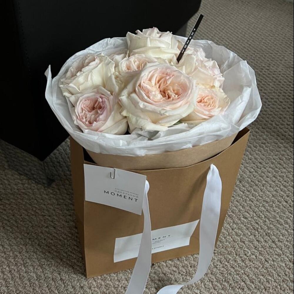 Букет роз сорта Охара, упакован в нежную тишью и крафтовую бумагу.Все наши букеты мы доставляем в фирменном оформлении. Пакет мы используем для комфортной транспортировки цветов, и это стало неотъемлемой частью нашего оригинального дизайна.Преимущественно, мы используем натуральные материалы для изготовления своих продуктов. Moment- eco friendly brand По желанию, подпишем карточку к вашему букету, укажите это в примечаниях.Ценность нашей работы в ваших лучших МОМЕНТах.