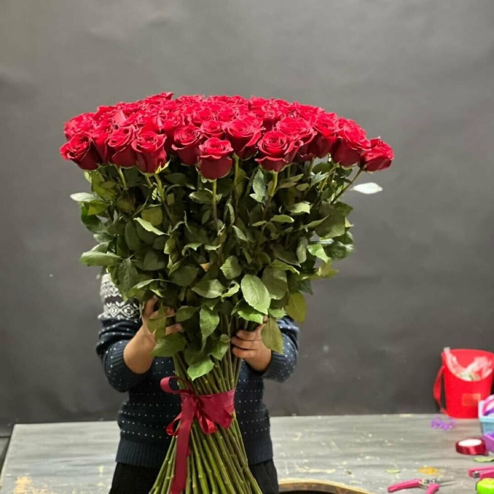 розы эквадор 80 см эксплорер – 101 шт.Лента атласная – 1 шт.