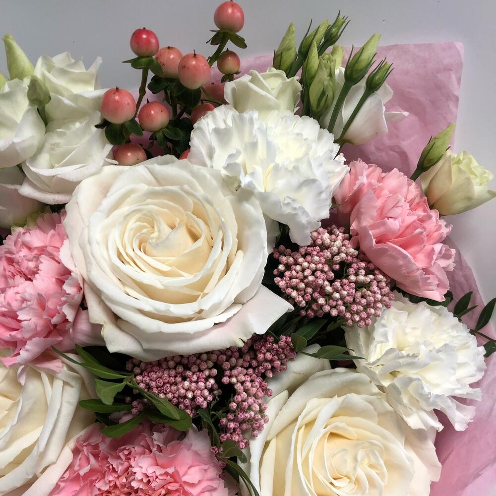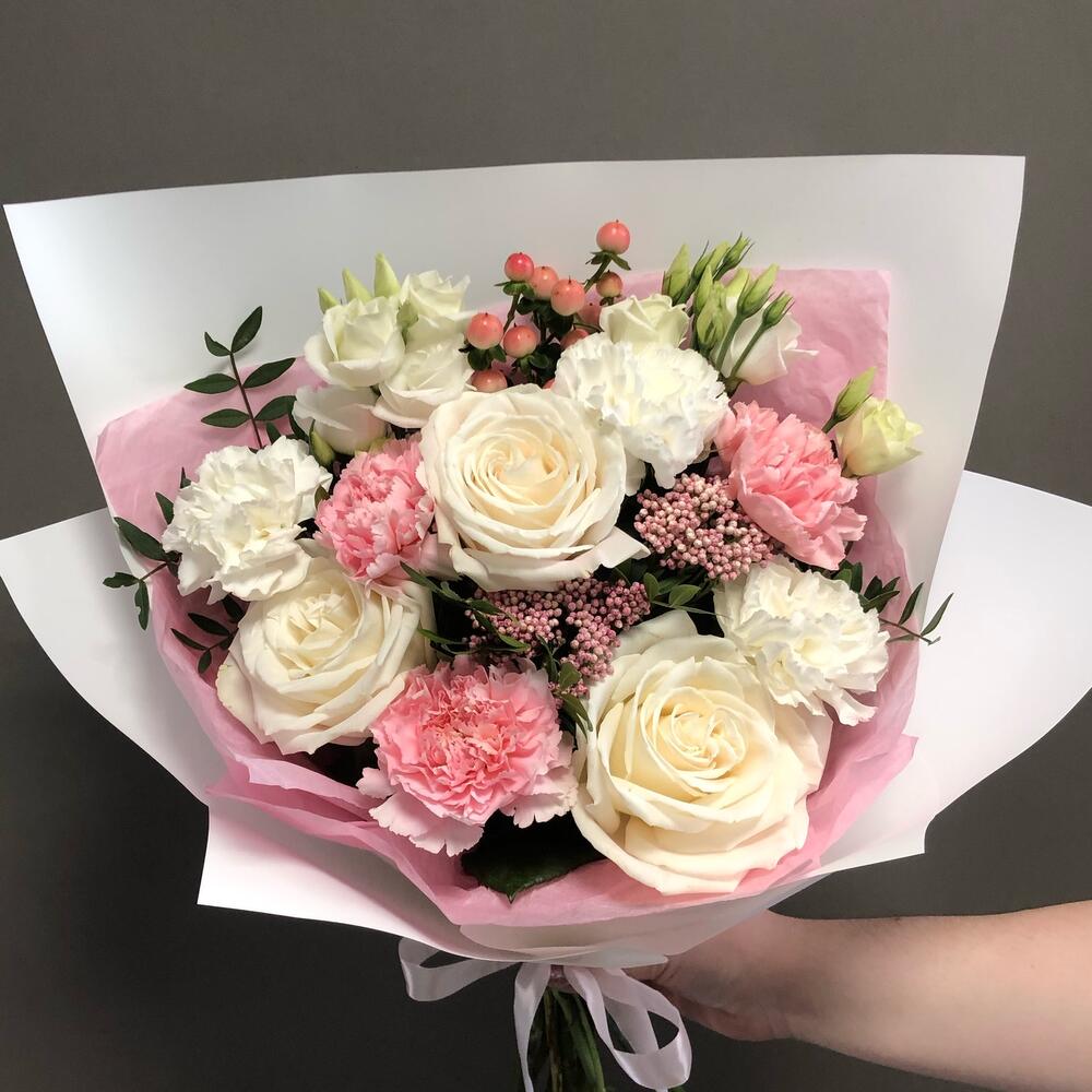 Гвоздики, Кустовые розы, Пионовидные розы, Розы