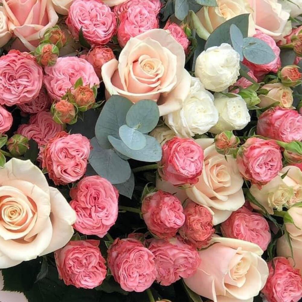 Гвоздики, Кустовые розы, Лизиантусы, Пионовидные розы, Розы